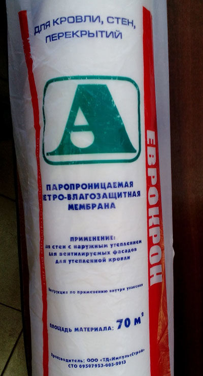 Ветро-влагозащитная паропроницаемая мембрана применяется для защиты утеплителя и внутренних элементов стен от ветра, конденсата, влаги из внешней среды, а так же обеспечивает выведение влажного воздуха из утеплителя. Еврокрон А используется для защиты утеплителя и конструкции здания в стенах и вентилируемых фасадах, укладывается с внешней стороны утеплителя под наружной облицовкой стены.